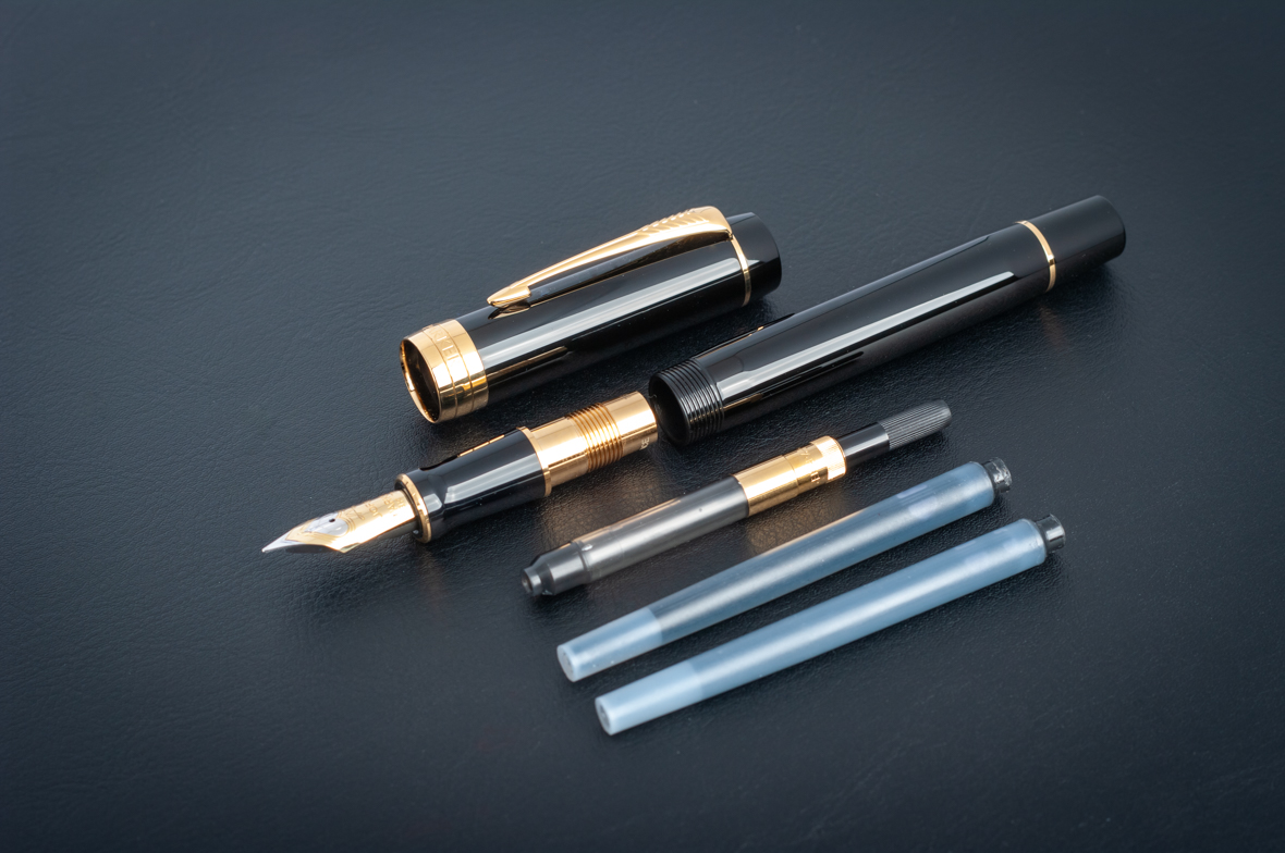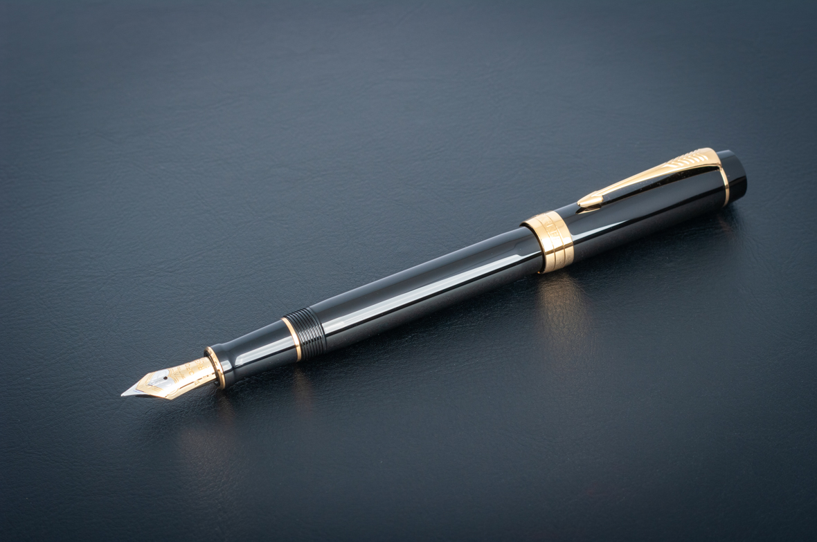 Перьевая ручка Parker Duofold Classic Centennial Black GT (F) от официального дилера Parker в Жуковске. Вы можете дополнительно заказать гравировку, которая подчеркнет Вашу оригинальность и придаст памятность статусному подарку. Все ручки Паркер поставляются в фирменном футляре.